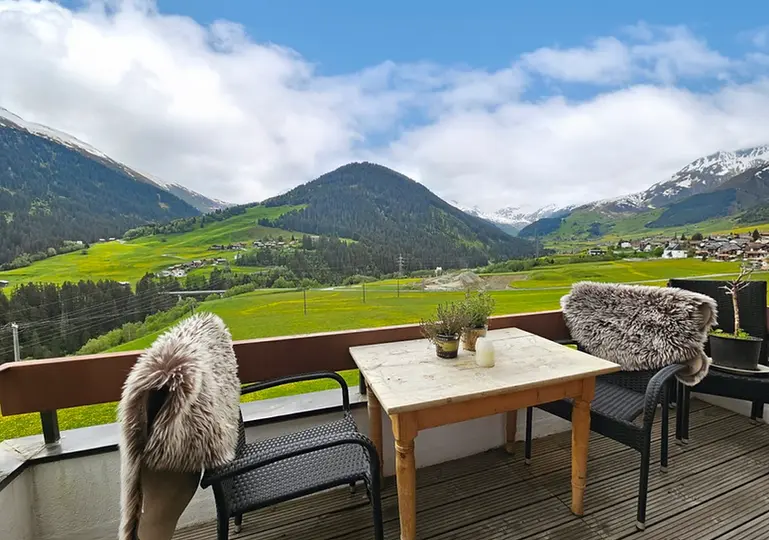 From the balcony you can enjoy a magnificent and imposing view of the Grisons mountains. Furthermore, the apartment has its own washer-dryer in the apartment, as well as its own garage.